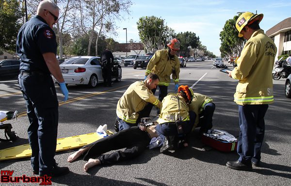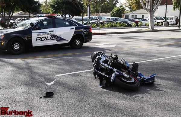 Burbank Police responded Code 3 after receiving several calls that a motorcyclist was struck and down on the 1800 block of West Magnolia Thursday afternoon.