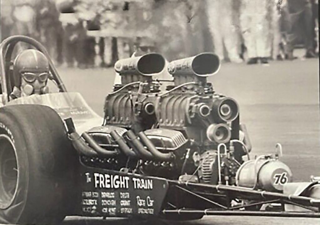 Bob Muravez wanted to be a drag racer but is father forbade it so he created an alter ego Floyd Lippencott Jr., it was Floyd who mastered the wheel of the infamous Freight Train twin Blown Chevy Top Gas Dragster and the twin engine Gas Dragster “Pulsator.” He set records and won countless events. In 1963, the Freight Train, driven by alias Floyd Lippencott Jr. won the Top Gas Eliminator class at the NHRA Winter nationals at Pomona, CA. In 2001, Bob returned to racing, driving a Nostalgia Top Fuel Dragster. At age 63, he scored 5 impressive wins during his first year back behind the wheel. He has also set a personal best of 6.17 seconds at over 230 MPH in the quarter mile.