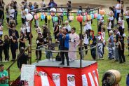 Students learned the Shin Hokkai Bon Uta dance during the previous week from dance teacher Christine Inouye and Muir Physical Education teachers. The event also included the traditional yagura tower and taiko drums, courtesy of the Little Tokyo Dance Club.