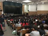 At the Japan Day event, the nine visiting ninth-graders from Rebun High School all introduced themselves to the Muir students and each shared something they really liked as a hobby or about America. Muir students responded loudly to many of the shared interests and hobbies, such as music, basketball, hamburgers and more. The Rebun students again performed the “Nanchu Sōran Bushi.”