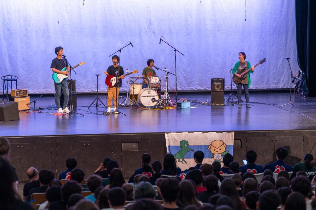 The Yoyoka Family Band also performed at the assemblies. Daughter Yoyoka shot to internet stardom for her drum performance of “Good Times, Bad Times,” by Led Zeppelin, when she was eight years old. The family moved to America for her career three years ago, which prompted her mother Rie to pick up the bass.
