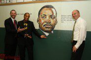 John Muir Middle School unveiled “Hall of Heroes,” a new series of murals painted by local artist Randall Williams, at a ceremony on Thursday afternoon, October 8. Fifteen notable figures from throughout the world have been painted in large portrait-style in the school’s 100 hallway.