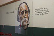 The notable leaders portrayed in the mural were selected by the teachers and administrators, and each portrait includes a quote to inspire students.