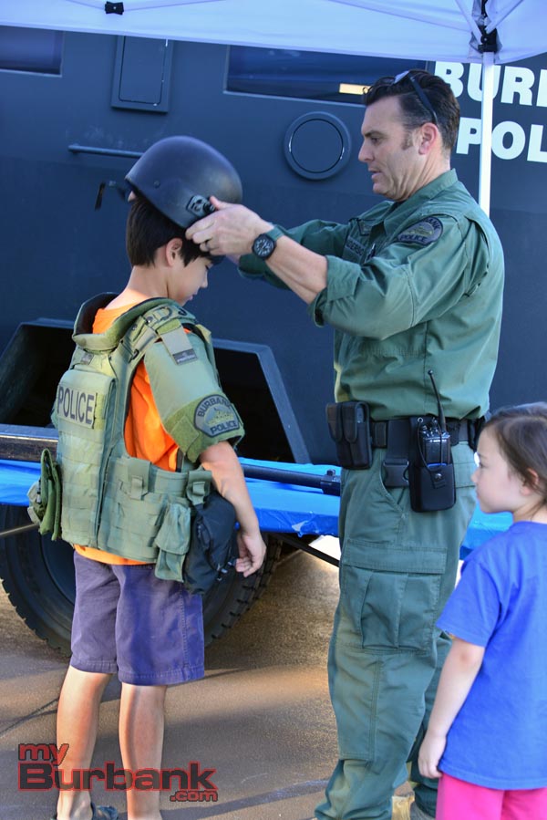 This year the Police Department moved the operation to BPD headquarters where several hundred citizens came out to meet members of the Burbank Police Departments’ swat team, K9 officers, traffic officers, cadets, animal control and other city departments.