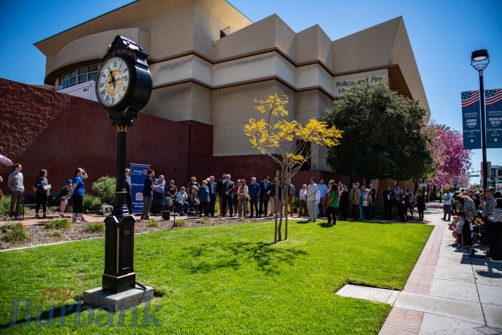 The ceremony, held on a sunny, warm morning, saw the participation of numerous city dignitaries and staff, including Mayor Schultz, Vice Mayor Nikki Perez, Councilmember Zizette Mullins, City Manager Justin Hess, Police Chief Michael Albanese, Assistant City Manager Courtney Padgett, and City Attorney Joe McDougall. Members of the Burbank Sunrise Rotary Club also attended to lend their support.