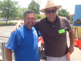 In temperatures over 100 degrees, with smoke from nearby fires in the air, the team from Nickelodeon worked through the day.