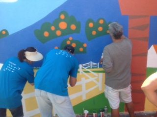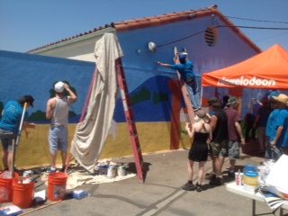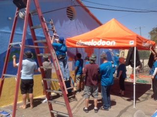 Nickelodeon employees flexed their creative and physical muscles at Ralph Emerson Elementary School last Friday. As part of parent company Viacom’s annual Viacommunity Day, Nickelodeon installed a garden, built several benches and a planter box and painted a Mission-themed mural in the previously drab student pick-up area.