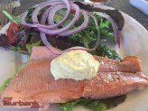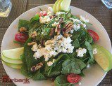 Our plates – cool, fresh gazpacho, chilled smoked trout with a delicate curry cream, spinach salad with blue and goat cheeses, walnuts and tomatoes and the portobello mushroom sandwich – were perfected crafted.