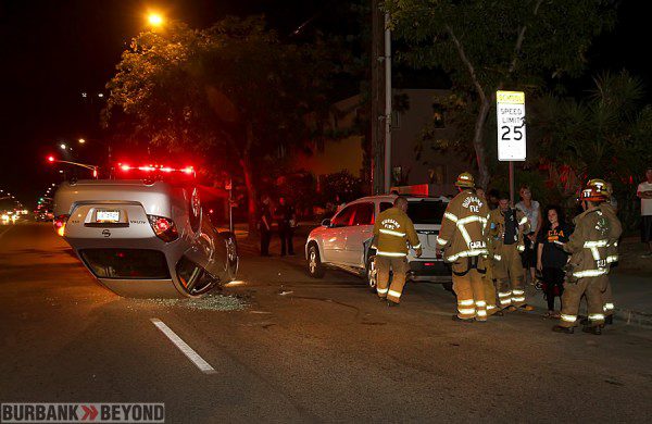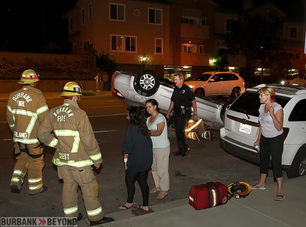 Burbank Police and Firefighters responded to Glenoaks and East on Tuesday evening after it was reported a car struck a parked car and it’s driver might be trapped.