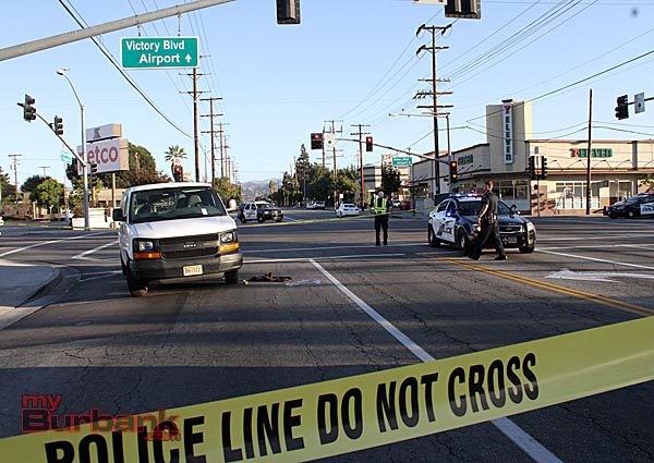 Sunday morning, a 76-year-old female was struck in a marked crosswalk while crossing eastbound Hollywood Way at Victory Blvd. The female was hit by a delivery van making a right turn onto southbound Hollywood Way.