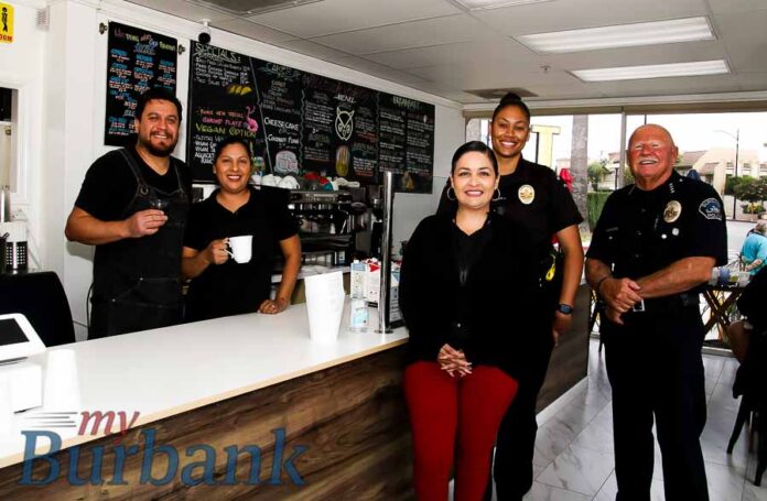 Joining the MHET officer Ennisha Kyles were the members of Command Staff, PIO, and Burbank Police Foundation members. Miracle Bakery is located at 1529 N San Fernando Blvd.