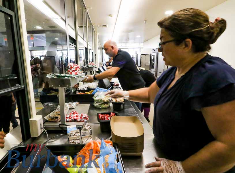 During the visit, Hill jumped in to support the Burbank High School cafeteria staff, who were short-handed. “It was a pleasure to be able to work with them and see how hard they work and the amazing connections that they make with students,” added Hill.