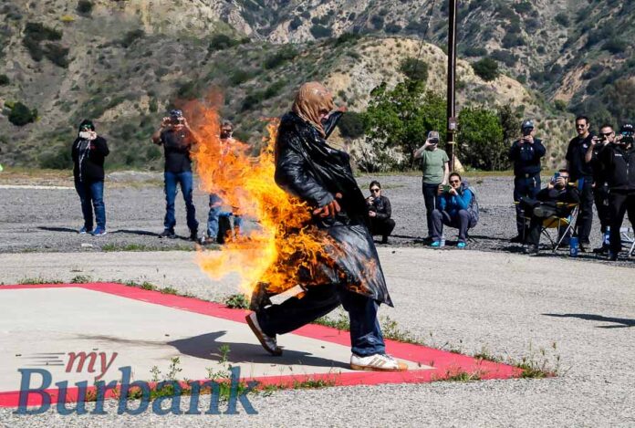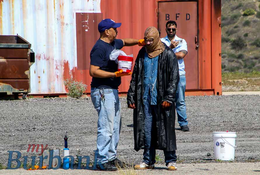 Following a fatal on-set shooting recently the Office of Cal Fire held a new safety class for Special Effects Personal, Pyrotechnic Operators, Fire Safety Officers, and others at The Burbank Fire Departments Training Center. Meeting at The Burbank Training for classroom instruction Center that went over pages and pages of safety recommendations. Then they headed up to the fire department’s landing zone for some hands-on and visual training.