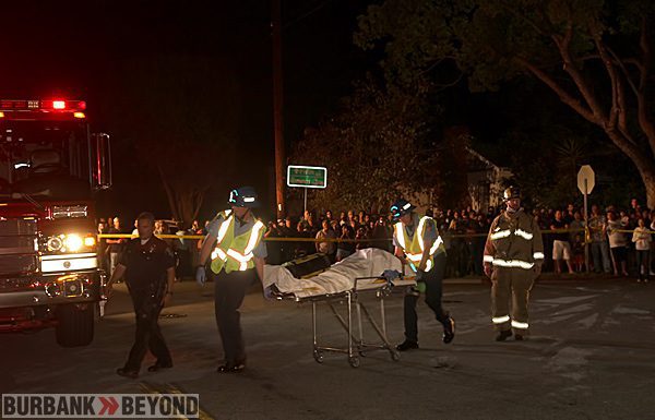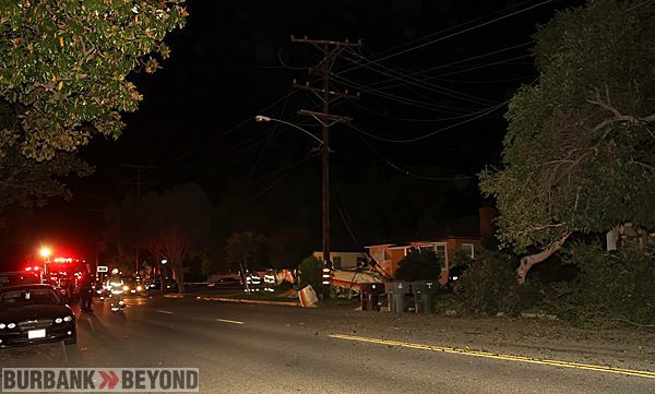 Both Glendale and Burbank Fire units were dispatched to the scene and upon arriving, found the pilot out of the plane with major damage to the plane and power lines down, causing a blackout in the area. A Basic Life Support Ambulance administered aid to the pilot, who reported pain in his shoulder. He was immobilized for precaution and taken to County/USC Medical Center.