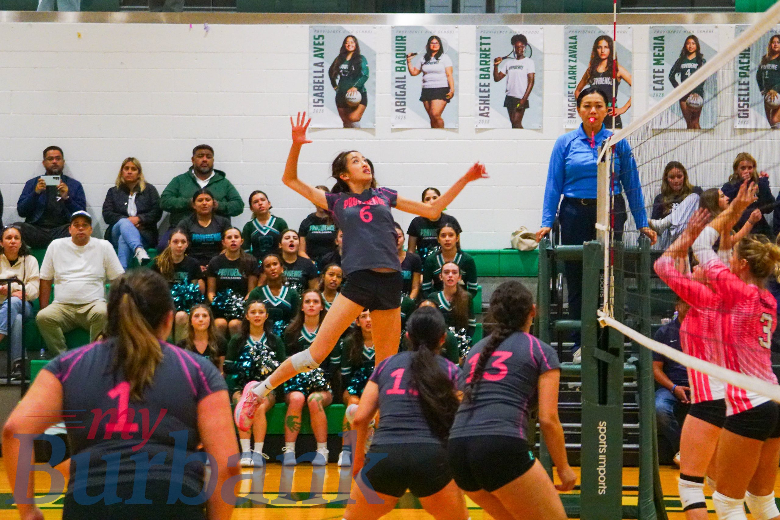At first glance and after two sets, it appeared that the Providence High girls’ volleyball team would easily handle Rim Of The World in a CIF Southern Section Division VI opening-round match at the Fritz B. Burns Activity Center on Tuesday night.