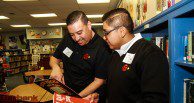Burbank Fire Fighter Justin Chin read during Read Across America at The Burbank YMCA. (Photo by © Ross A. Benson)