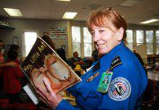 Station Manager For American Airlines Andrell Shade read at Bret Harte. (Photo by © Ross A. Benson)