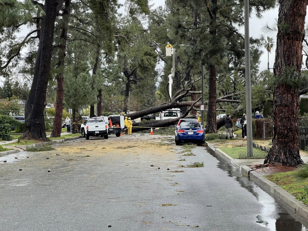 During the February storms, North Pass between Edison Blvd and Jeffries Ave, had three fallen Aleppo pine trees on one block, tearing up the sidewalk, crushing cars and homes, and cutting off water supply to residents.  The City said they analyze and respond to all claims alleging damage caused by trees on an individual basis.  The Public Works department addresses removal requests if there is sidewalk damage, pruning needed, or if the tree is impacting  the sewer infrastructure. Burbank Water and Power addresses tree removal requests if the tree is impacting water infrastructure.