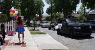 Members kept social distancing intact as they stayed in their cars and drove to several locations throughout Burbank.