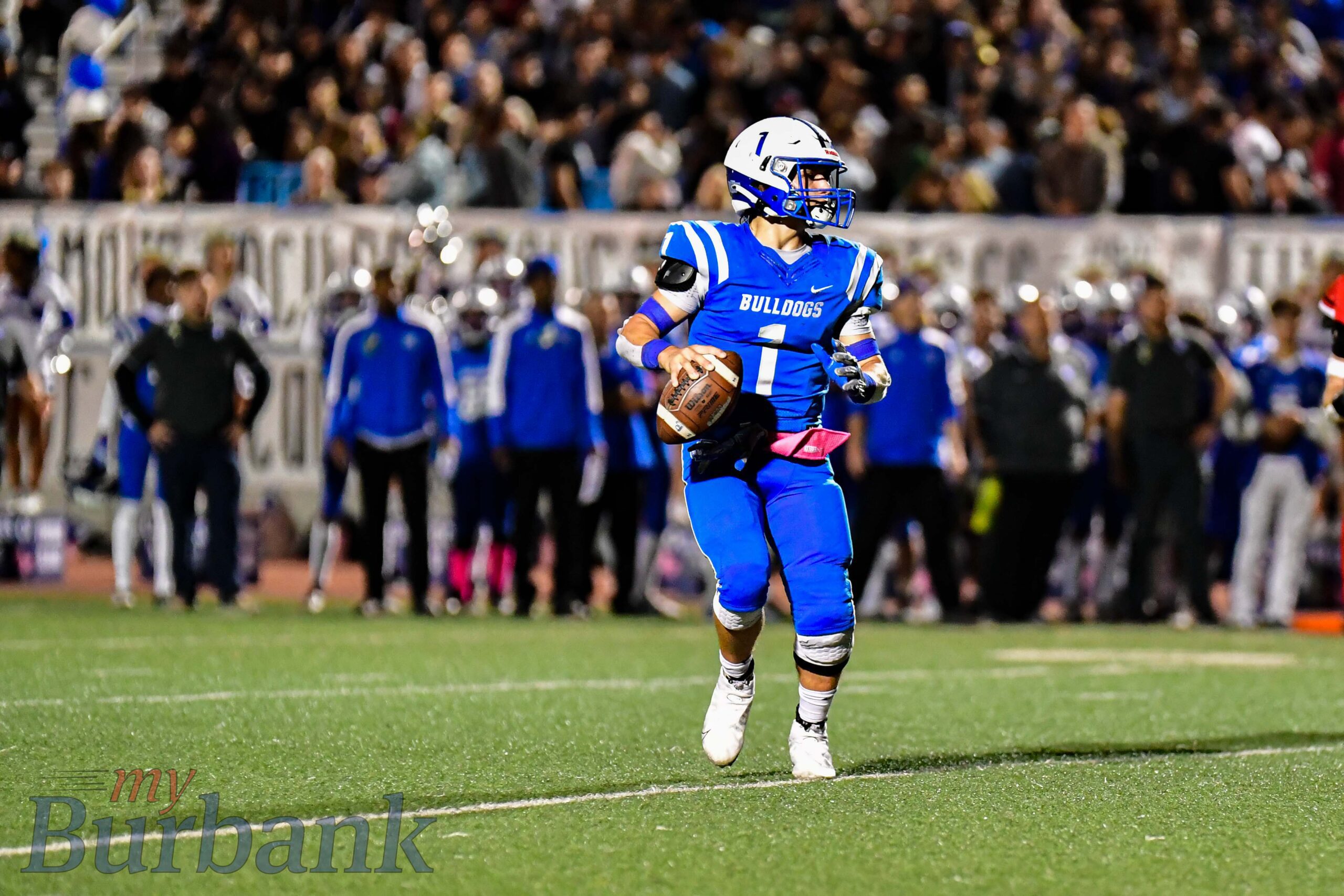 The key plays on the drive that gave Burbank a 10-point lead included Robinson’s 28-yard scamper on third down and seven from the Bulldogs 28, a 15-yard penalty on the Bears and Estrada’s 12-yard burst on second and eight from the Burroughs 27.