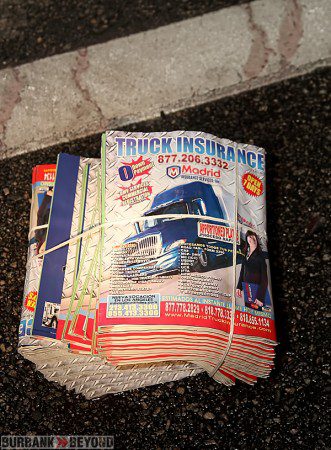 Thousands of copies of the magazine she was distributing ended all over the street, with it’s cover highlighting truck insurance, which we hope she had.