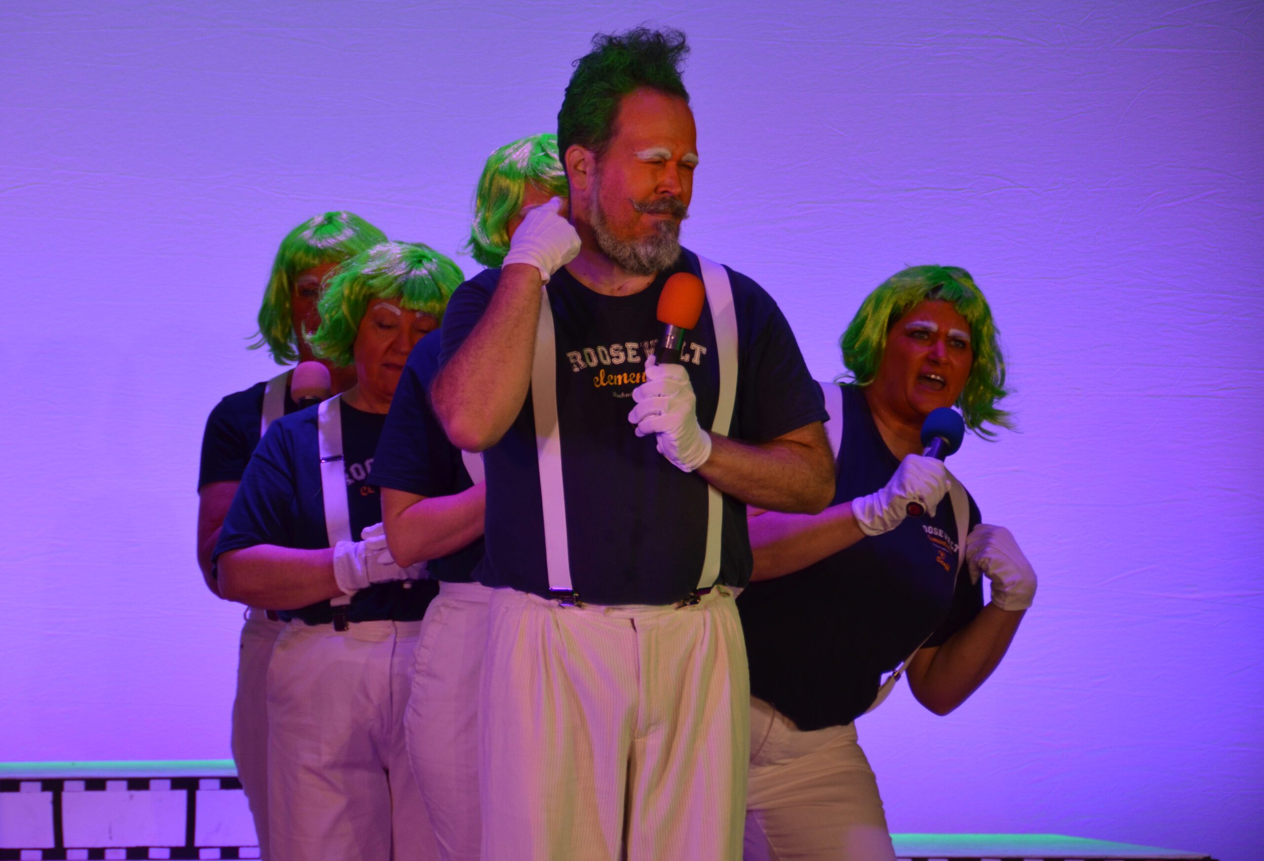 Roosevelt teachers and principal perform “The Oompa Loompa Song.” (Photo Courtesy of Mina Ho Ferrante)