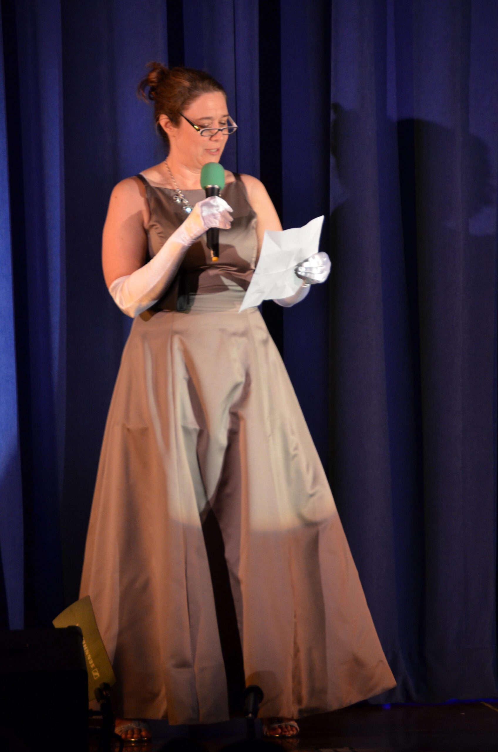 Roosevelt Principal Dr. Jennifer Meglemre accepts an Oscar for best variety show. (Photo Courtesy of Mina Ho Ferrante)