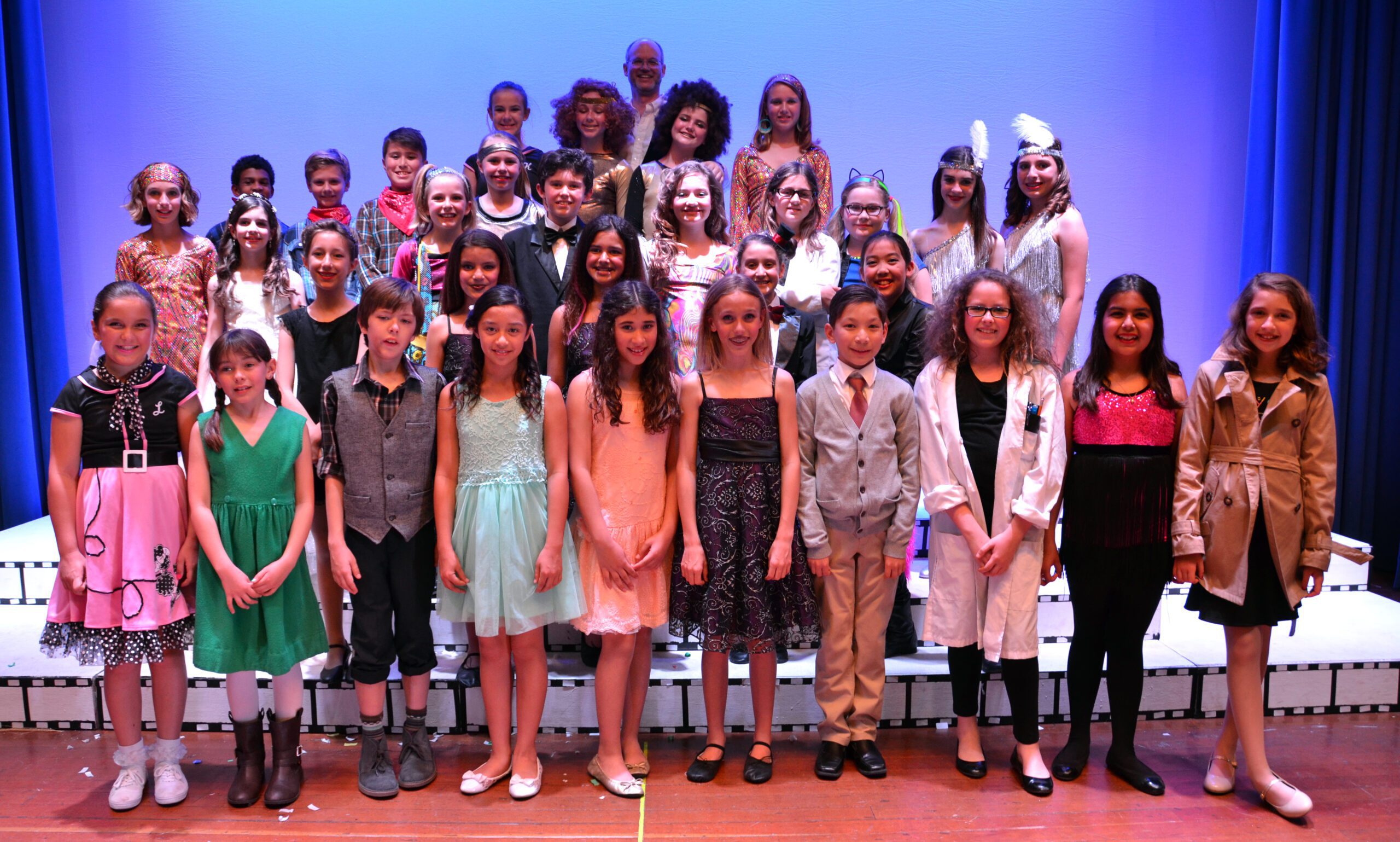 Roosevelt Elementary fifth-graders with variety show director Darryl Johnson (back, center.) (Photo Courtesy of Mina Ho Ferrante)