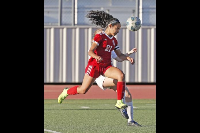 Lily Gonzalez was able to partially block a re-start by San Dimas goalie Maddy Morris, who had been passed the ball by one of her defenders. Unfortunately Gonzalez was unable to get enough of the ball to force it into the back of the net.