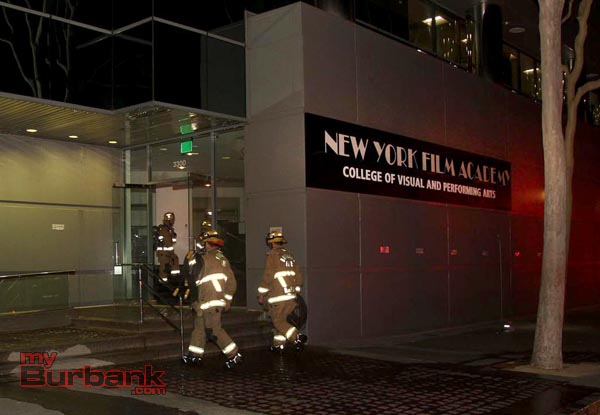 Burbank Fire responded to a reported smoke alarm inside the structure at 3300 Riverside Drive late Saturday night. Once the single engine on scene entered the building they found smoke banking down low on the second floor of the New York Film Academy located at 3300 West Warner Blvd.