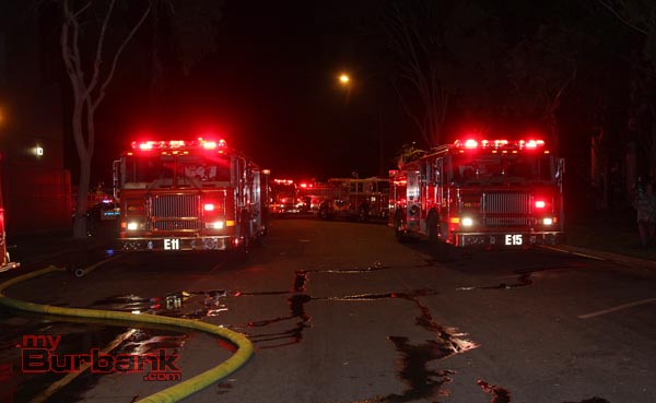 The amount of water and smoke removal that required a second alarm to be called brought several more pieces of equipment and personnel. Mutual aid from Glendale automatically filled the empty Burbank Fire Stations and an Air Utility and Battalion Chief from Glendale also responded to the scene.