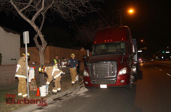 The Burbank Police Department assisted with traffic direction around the spilled fuel while the trucks were on Glenoaks Blvd.