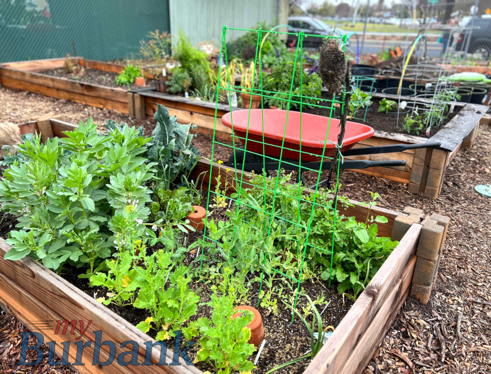 A break in the rainy weekend allowed for the perfect opportunity at the community garden located at 1141 North Pass Ave. The garden opened in May of 2022 allowing for plots of raised garden beds to be rented by residents for three year periods. The 12,000 sq ft lot is owned by the Los Angeles Department of Water and Power (LADWP) and leased to the City of Burbank, whose partnership has helped successfully launch and operate the garden.