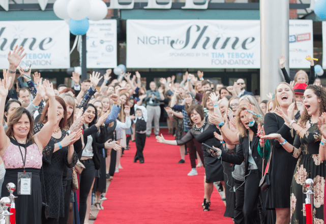 Night to Shine is hosted by churches all around the globe who desire to share the love of Christ with their community of people with special needs. Night to Shine is a complimentary event and while each event is a little different, some activities include a red carpet entrance complete with a warm welcome from a friendly crowd and paparazzi, hair and makeup stations, limousine rides, corsages and boutonnieres, a catered dinner, dancing, karaoke, gifts, a Respite Room for parents and caregivers, a Sensory Room, and a crowning ceremony where every honored guest receives a crown or tiara!