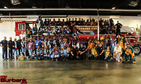 The athletes were guests of the Burbank Fire Department before the ceremonies for breakfast served by Burbank Firefighters and members of Fire Fighter Local 778. The guests posed for pictures along with trying on helmets after their full buffet breakfast that included pancakes, waffles, eggs, fruit and juices of their choice. Following breakfast the athletes posed for a group picture in front of Burbank Fire Truck 11 with all their new firefighter friends.