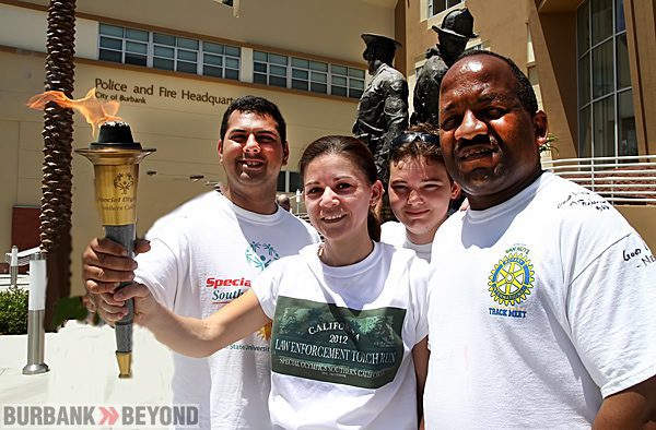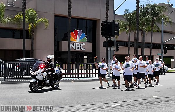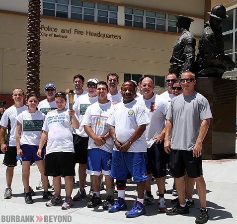 Burbank police officers on the running team accepted the torch from the Los Angeles Police Department’s North Hollywood Division team in Toluca Lake at Riverside Dr.and Clybourn Ave around 12:50 in the afternoon.