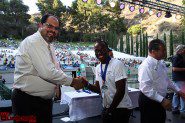 The athletes enjoyed dinner with Burbank’s elected officials served by the Worthe Real Estate Group employees before a concert by famed musicians Captain Cardiac and the Coronaries. The concert was free to the public as a gift from the Worthe Real Estate Group. The companies President Jeff Worthe was on hand to greet the athletes and help present medals.
