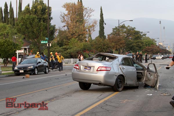The Burbank Police Traffic Department are still investigating this wild traffic accident that sent one car flipping end over end several times before coming to a rest in the middle of Verdugo Avenue. Debris littered the street close to two city blocks long.