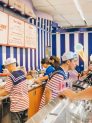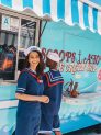 The location on 1201 S Victory in Burbank has been transformed into Scoops Ahoy, a nautical themed ice cream shop, where the walls are striped with blue and white, the doors showcase wood planks and portholes, employees are decked head to toe in sailor outfits, and the signs look exactly how they would have been over 30 years ago. You can now experience Scoops Ahoy just like the Hawkins gang would have in 1985.