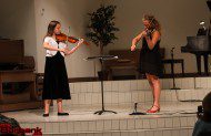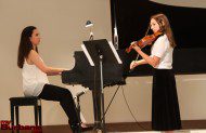 Burroughs freshman Ella Jennings, who’s studied violin for four years, performed a solo concerto piece by Fritz Seitz with accompanist Carolyn Lessley. Ella and Jordan sixth-grader Eyen Paredes played a violin duet attributed to W.A. Mozart, Der Spiegel.