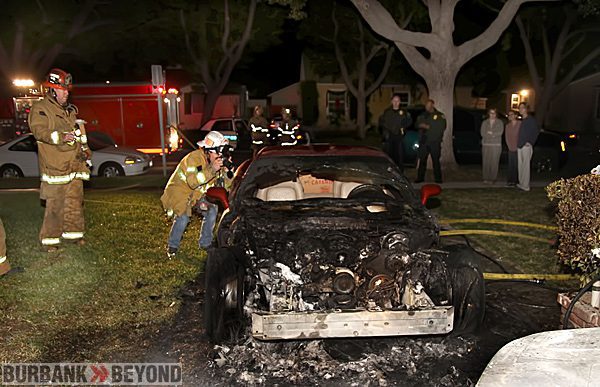 At approximately 2 a.m. BFD responded to a car fire on 2100 block of N Rose St. The car, a 2006 Corvette, was destroyed. This incident, according to Sergeant Darin Ryburn, Press Information Officer for the Burbank Police Department, was suspicious and similar to fires reported last night in Sun Valley and North Hollywood.