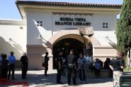 All patrons inside the library were evacuated to a safe location outside the front doors.