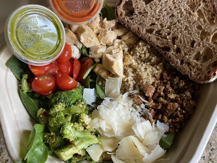 There’s something for just about any diet on the menu, including vegan and gluten free. The salads and bowls are always made to order and very customizable. The bowls feature a warm grain like rice or quinoa. The salads are typically grain free.