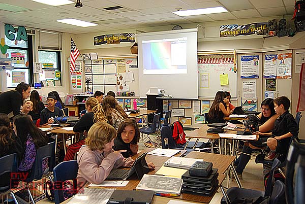 Seventh-grade Social Studies teacher Stefanie Enokian has been using iPads with all of her students throughout the day at Luther Middle School. Various paid and free applications are employed for teaching, testing and special projects.