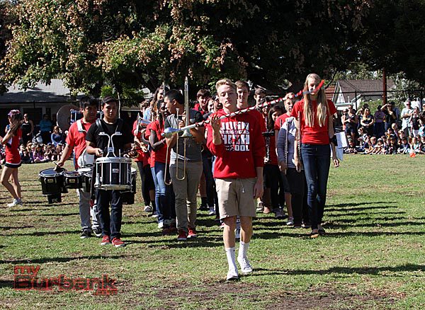 Board of Education members Dave Kemp and Ted Bunch, along with Dr. Tom Kissinger, Assistant Superintendent of the Burbank Unified School District, were also in attendance. Burroughs cheerleaders performed several spirited cheers for the students and the JBHS marching band played additional music.
