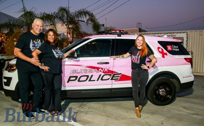 The outdoor patio of Tequilas Burbank was reserved for the event and seated over 145 guests who came to dine, drink, and enjoy the evening’s program. The Burbank Police Department brought their breast cancer awareness pink police cruiser for photos in the parking lot.