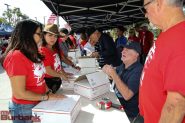 “Paul Sessum decided that he would like us to do something for the servicemen and women, continued Starleaf, “For me, it was an easy decision and mine was based in part on my brother in law who served in Vietnam and as you probably know, they were treated poorly on their return and felt extremely unappreciated. We started the event with just 100 boxes packed and we were thrilled. It went up from there-250-then 400 and is now at about 1000 boxes. We work in conjunction with Burbank’s Hands Across the Battlefield which is headed by Mickey DePalo. He acts as an advisory capacity and works at the event with us along with the people on his committee.”