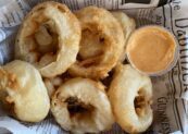 The seafood chowder was fantastic. Served with a toasted slice of sourdough bread, the chowder was savory, rich and colorful. The side order of onion rings was accompanied by a slightly spicy whisky aioli which perfectly complemented the thick, golden brown fried rings.