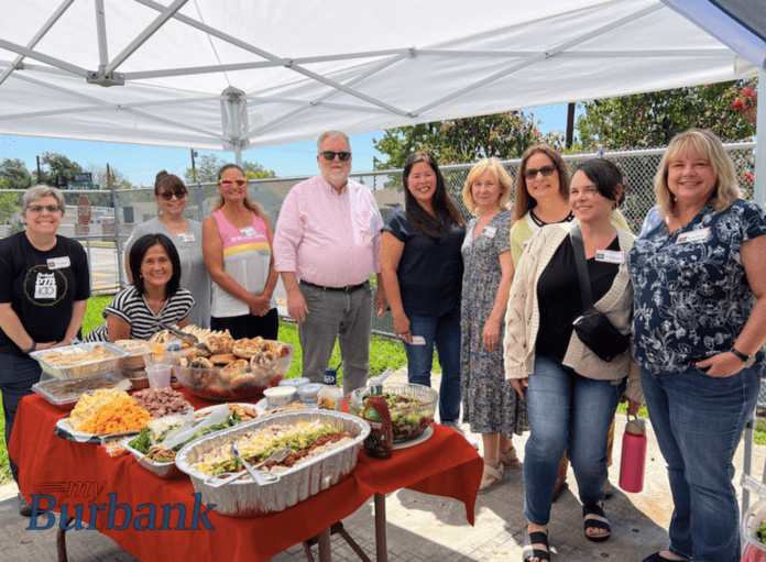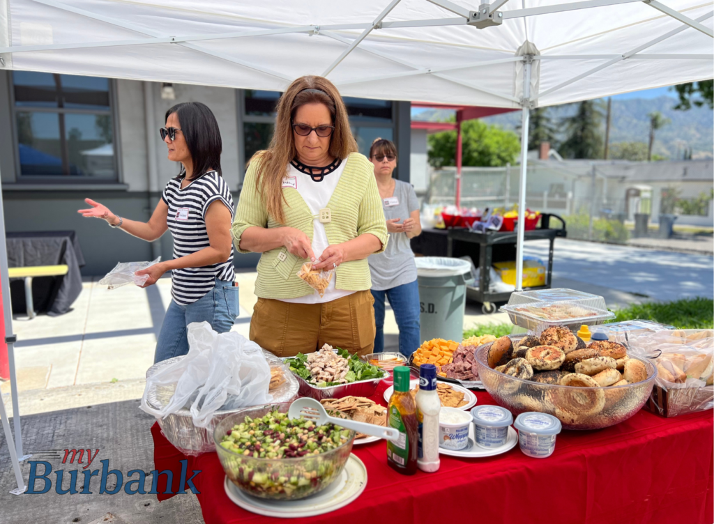 Reynolds recruited her friends from the Burbank Council PTA who jumped into action to make sure the staff was well taken care of.  Flower centerpieces decorated the tables, and an array of food and drink options were donated and brought in by the volunteers.