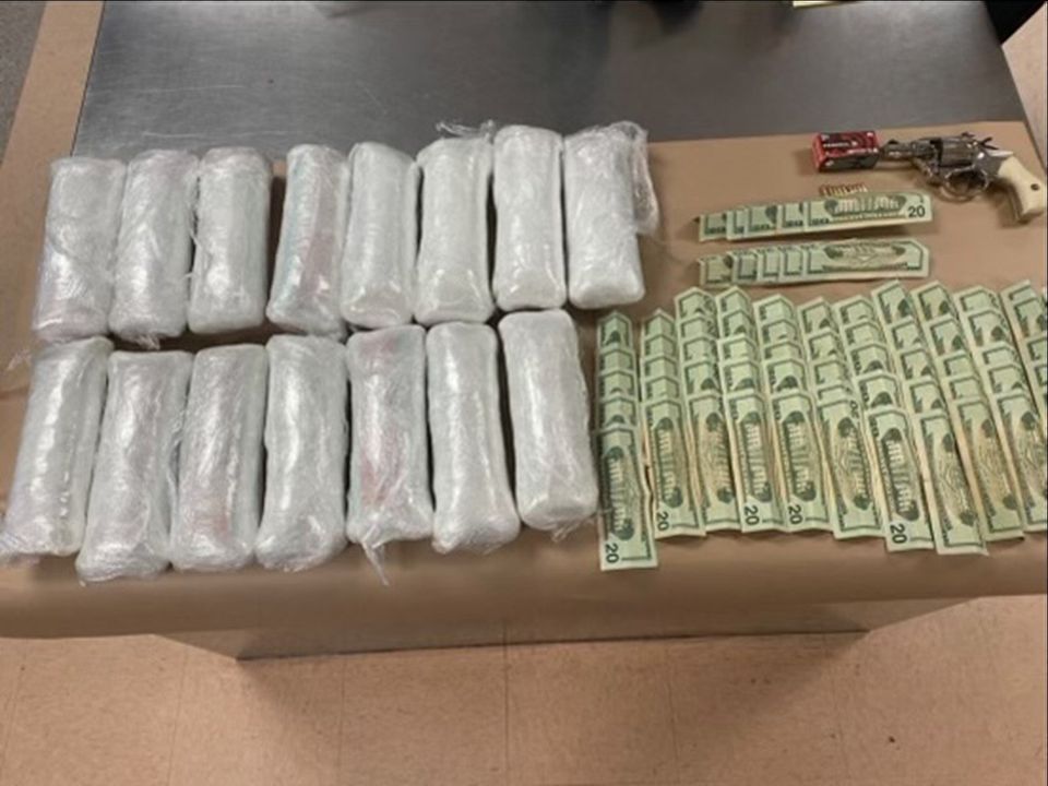Following the traffic stop and search of the vehicle, Burbank Police officers located and seized a loaded handgun, approximately 50 rounds of ammunition, and several wrapped bundles, each containing blue circular pills imprinted with “M-30” that field tested positive for the presence of fentanyl.